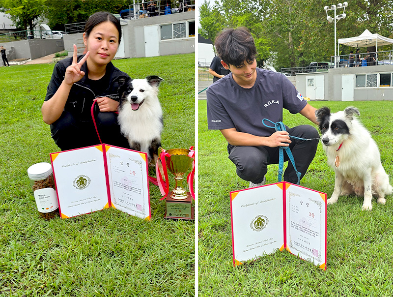 (왼)국가자격대비 부문 1위 이O빈 학생과 반려견 짱구 / (오)가정견(FD) 부문 3위 김O민 학생과 반려견 빠작