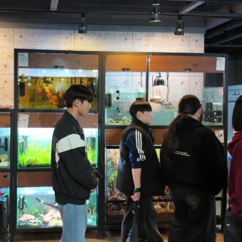 수업이 끝난 뒤에는 반려동물계열의 특수동물 사육실과 관상어 비바리움 큐레이팅 공간을 둘러보며 수천 마리에 달하는 다양한 특수동물들과 직접 교감하는 수업도 함께 진행되었습니다.