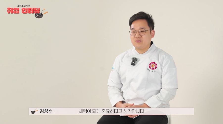 김성수 선배는 현재 직무를 수행하는 데 필요한 필수 역량으로 학교에서 배운 모든 기술과 지식이 당연히 중요하다고 강조했습니다. 그중에서도 특히 '체력' 관리가 필수라고 전했는데요. 장시간 서서 빠르게 움직여야 하는 주방 환경의 특성상 강인한 체력이 밑바탕이 되어야 업무를 원활하게 이어갈 수 있기 때문입니다!
