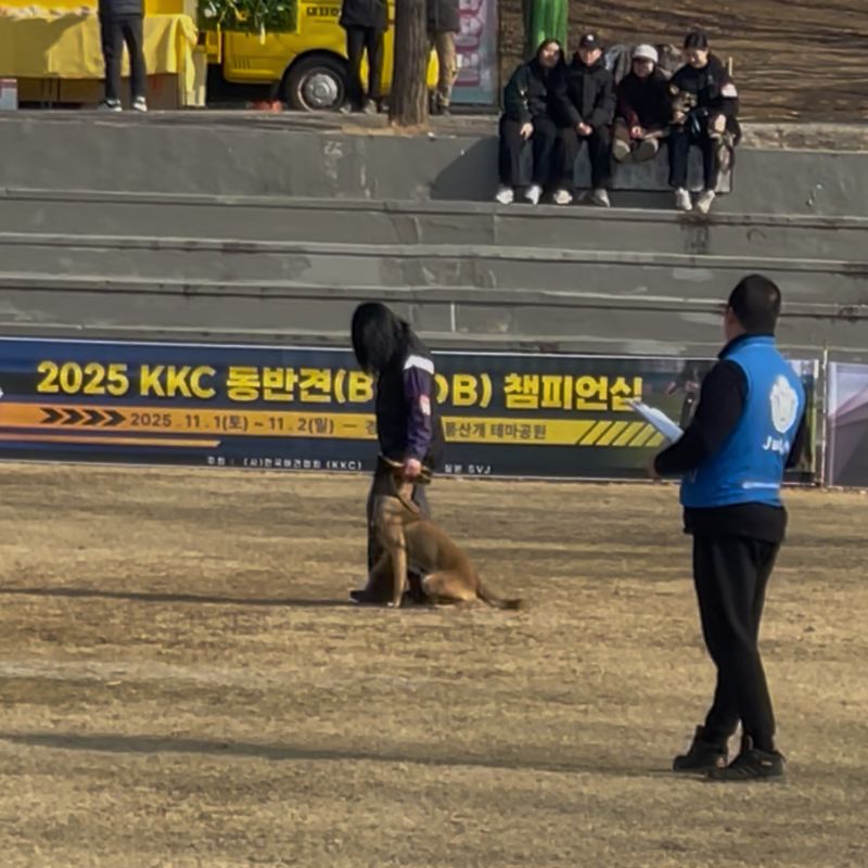 이번 <2025 KKC 반려견 종합훈련경기대회>에서는 독트릭 1부문에서 서O원 학생과 반려견 맘바가 1위, 독트릭 2부문에서 민O현 학생과 반려견 맘바가 1위, FD부문에서는 이O호 학생과 반려견 하키가 2위를 차지하며 총 3관왕을 수상하는 쾌거를 이뤘습니다.