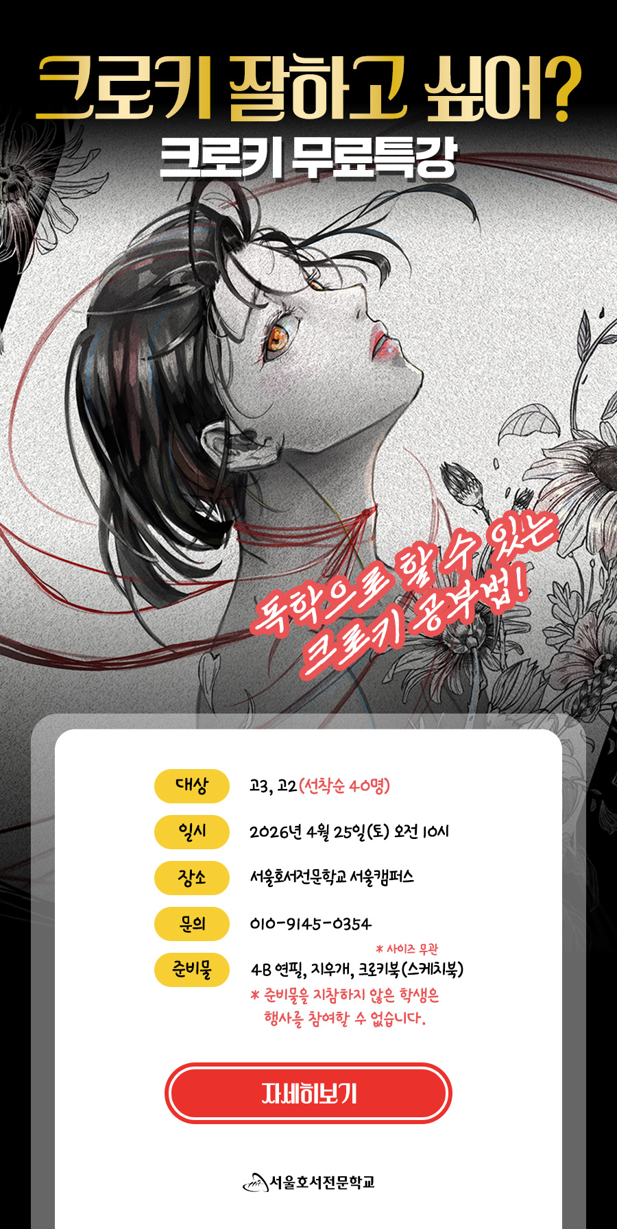 독학으로 할 수 있는 크로키 공부법을 배우는 무료 체험특강에 여러분을 초대합니다.
