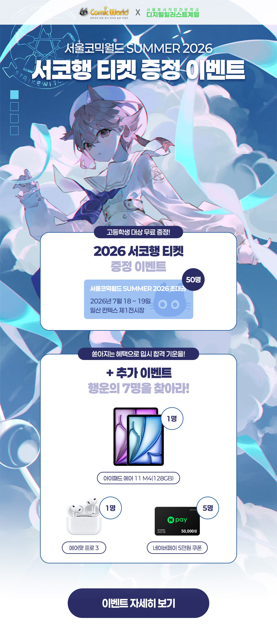 서울코믹월드 SUMMER 2026 티켓증정 이벤트에 초대합니다.