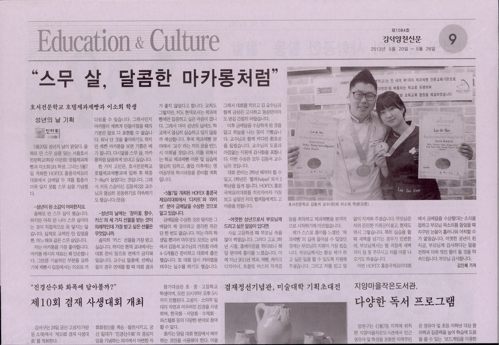 강서양천신문 제1084호에 호텔제과제빵과 재학생 이소희 학생의 기사가 등재되었습니다.