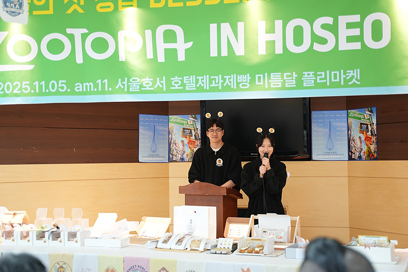 호텔제과제빵계열은 해마다 졸업작품 전시회에서 독창적인 콘셉트의 플리마켓을 선보이며 손수 제작한 다양한 베이커리와 디저트를 전시하고 판매하고 있는데요, 올해 플리마켓은 '동물친구들의 파티시에'를 테마로 사랑스러운 동물 캐릭터들이 가득한 현장을 연출했습니다. 그 특별했던 현장으로 함께 들어가 볼까요?