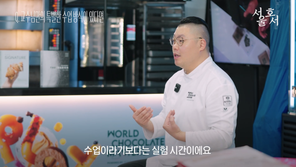 김동석 교수님은 최근 자신의 20년 노하우를 집약한 저서 'THE SIGNATURE'를 출간하며 세프들에게 영감을 전하고 있는데요. 이 책에는 세계 무대에서 축적한 경험을 바탕으로 완성한 독창적인 테크닉과 전문적인 노하우를 담았습니다. 서울호서 제과제빵계열 학생들에게는 특권이 주어지는데요, 바로 저자인 김동석 교수님께 직접 수업을 들을 수 있다는 점입니다.