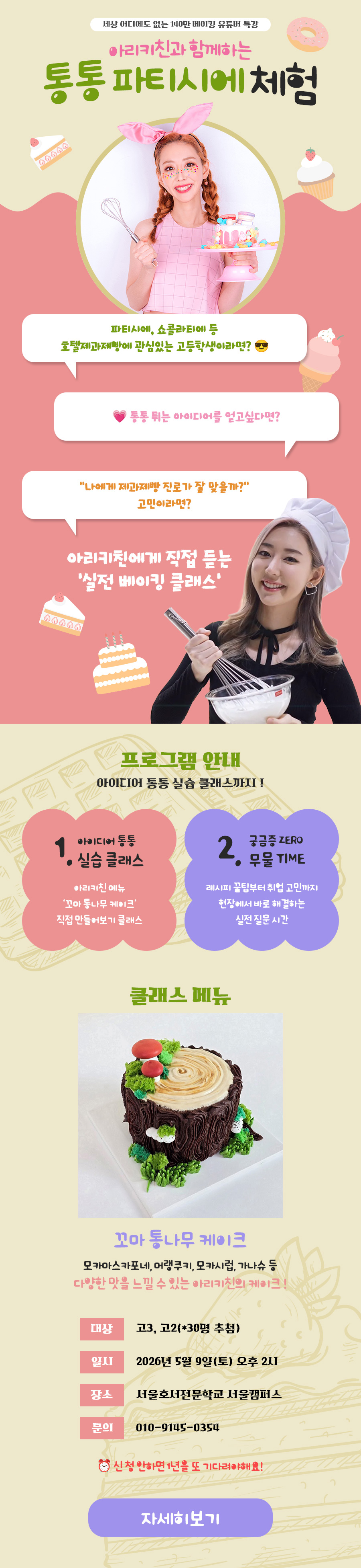 아리키친과 함께하는 통통 파티시에 체험특강에 여러분을 초대합니다.