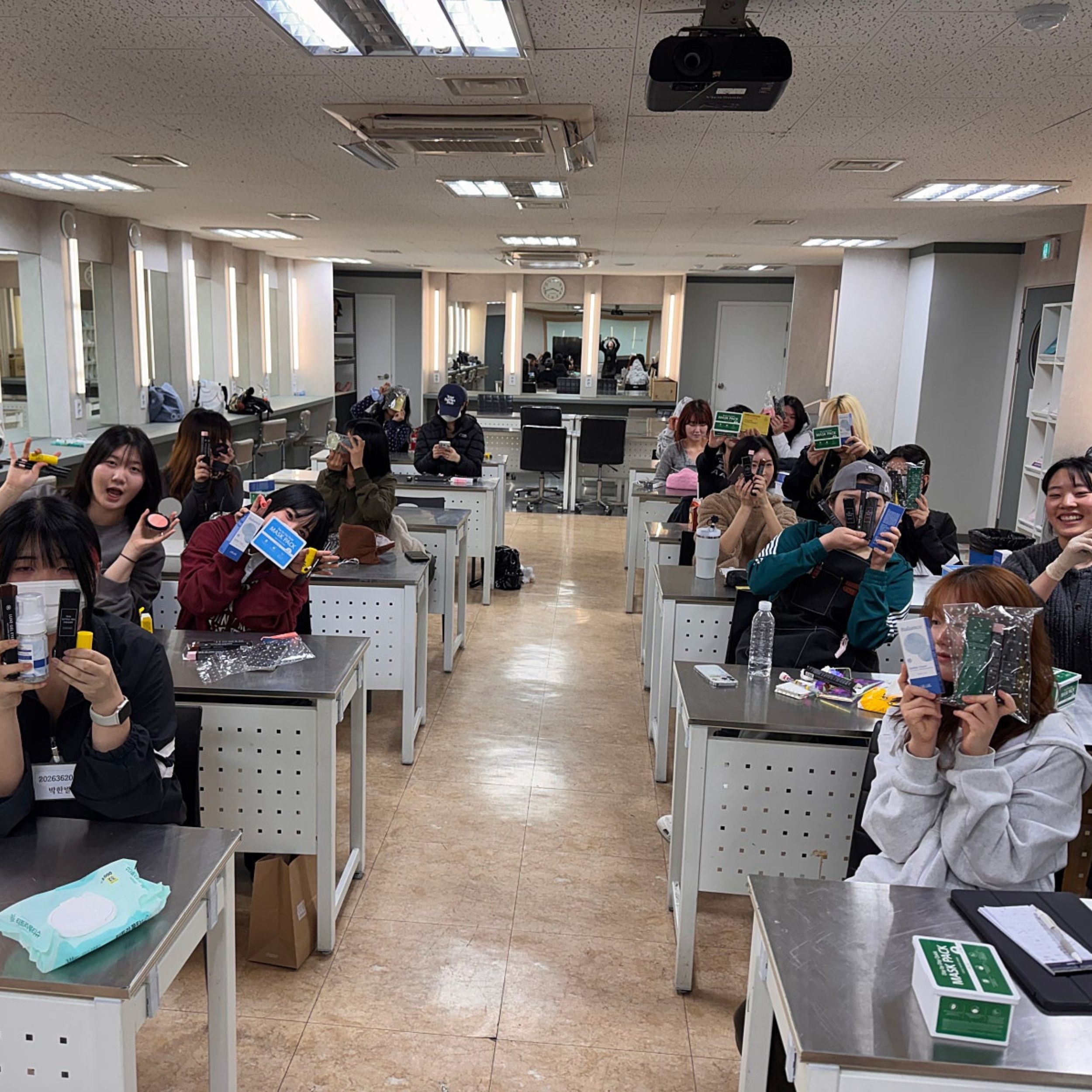 이날 수업에서는 리르 코스메틱에서 협찬한 마스크팩 3종과 다양한 색조 메이크업 제품을 활용한 실습이 진행되었는데요.