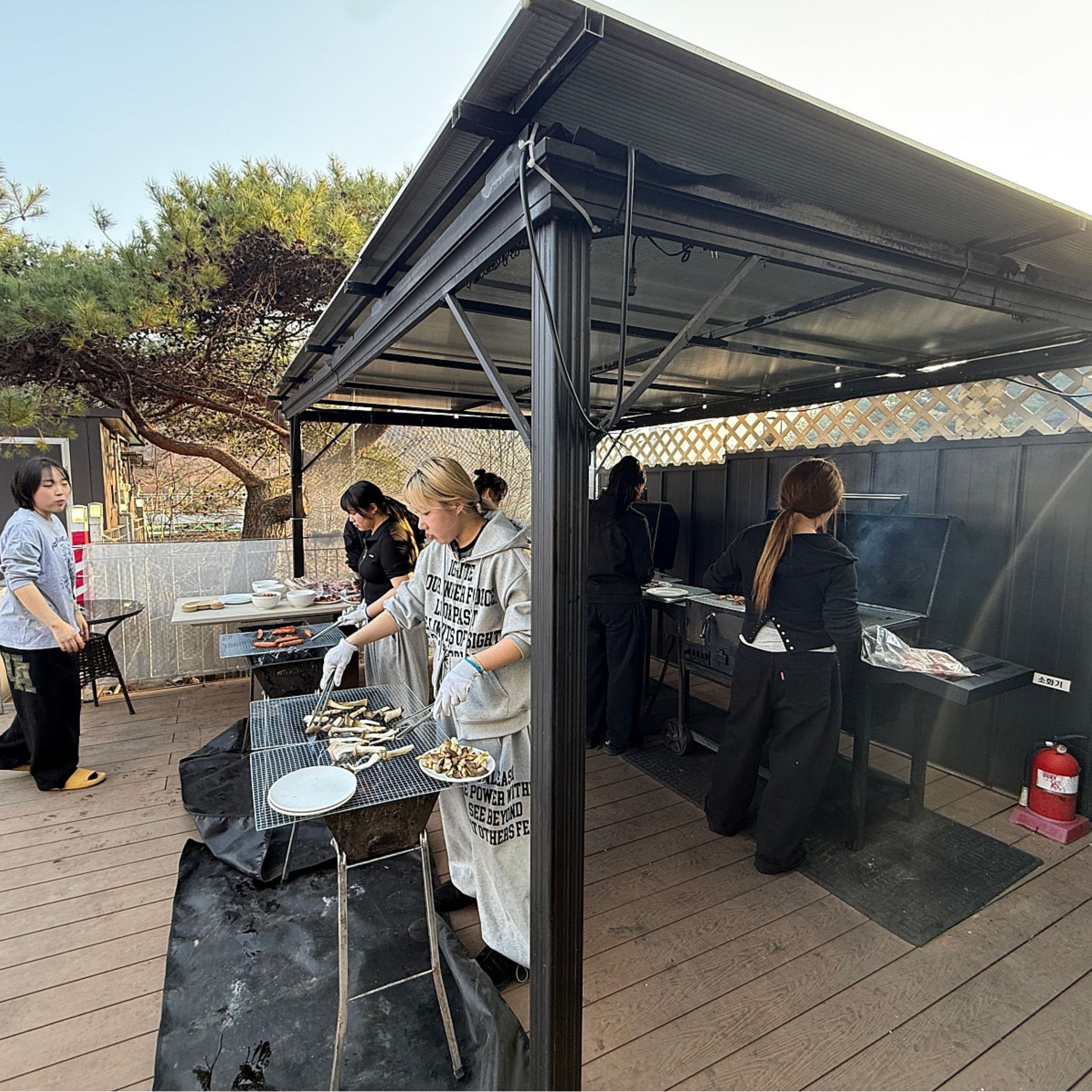즐겁게 레크레이션을 한 후 선배들이 후배들을 위해 고기를 구워주고 모두가 함께 모여 단합의 시간을 가지며 더욱 돈독해졌습니다.