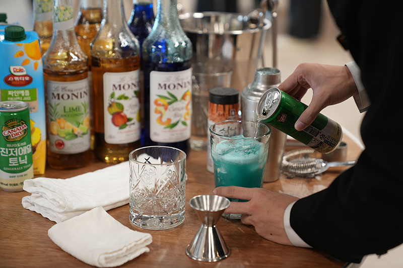이후에는 시럽과 주스를 활용한 논알콜 칵테일을 직접 제조했습니다. 자신이 만든 칵테일을 시음하며 바텐더의 매력을 가까이에서 느낄 수 있었습니다.