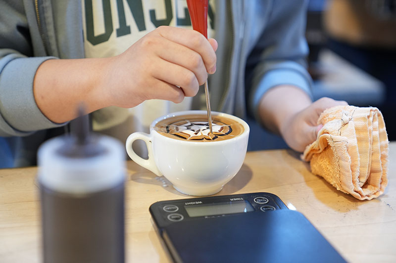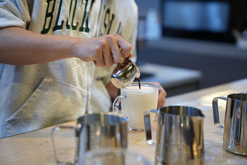 카페에서 사용하는 전용 커피 머신을 통해 원두를 내리고 스탬핑을 한 뒤 커피를 추출하고, 추출된 커피를 이용하여 다양한 스페셜 메뉴를 직접 만들어보는 시간을 가졌습니다.