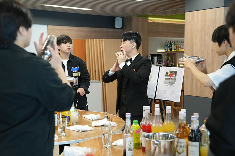 단순히 커피와 칵테일을 제조하는 것에서 그치는 게 아닌, 호텔식음료서비스계열 재학생 선배들이 멘토로 참여해 실무 경험과 진로 조언을 전해주며 참가 학생들의 궁금증을 해소해 주었습니다.