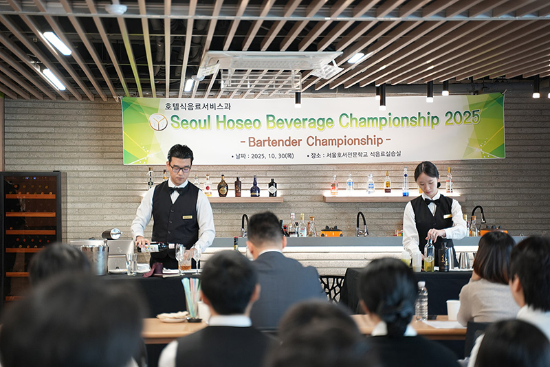 가을의 끝자락, 선선한 가을바람과 함께 돌아온 SHBC 2025가 열렸습니다. SHBC 2025는 Seoul Hoseo Bevarage Championship의 약자로 호텔식음료서비스계열에서 매년 개최하는 경연 대회입니다. 이 자리를 축하해주기 위해서 식음료 분야의 꿈을 키워가는 고등학생 참가자들부터 후배들의 무대를 응원하기 위해 찾아온 졸업생들까지, 한자리에 모여 서로의 열정을 나누는 뜻깊은 축제가 되었습니다.