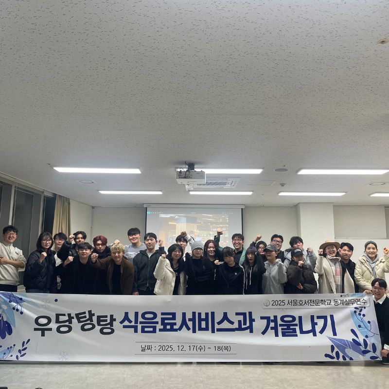 이번 동계 전공실무 연수는 1년간 습득한 전공 지식과 경험을 실제 산업 현장에 적용하고 스스로의 가능성을 점검해보는 소중한 기회였습니다. 겨울방학을 앞두고 서로를 격려하며 한 단계 더 성장한 호텔식음료서비스계열 학생들이 내년에는 더욱 넓은 시야와 풍부한 실무 감각을 겸비한 전문가로 성장하기를 기대합니다!