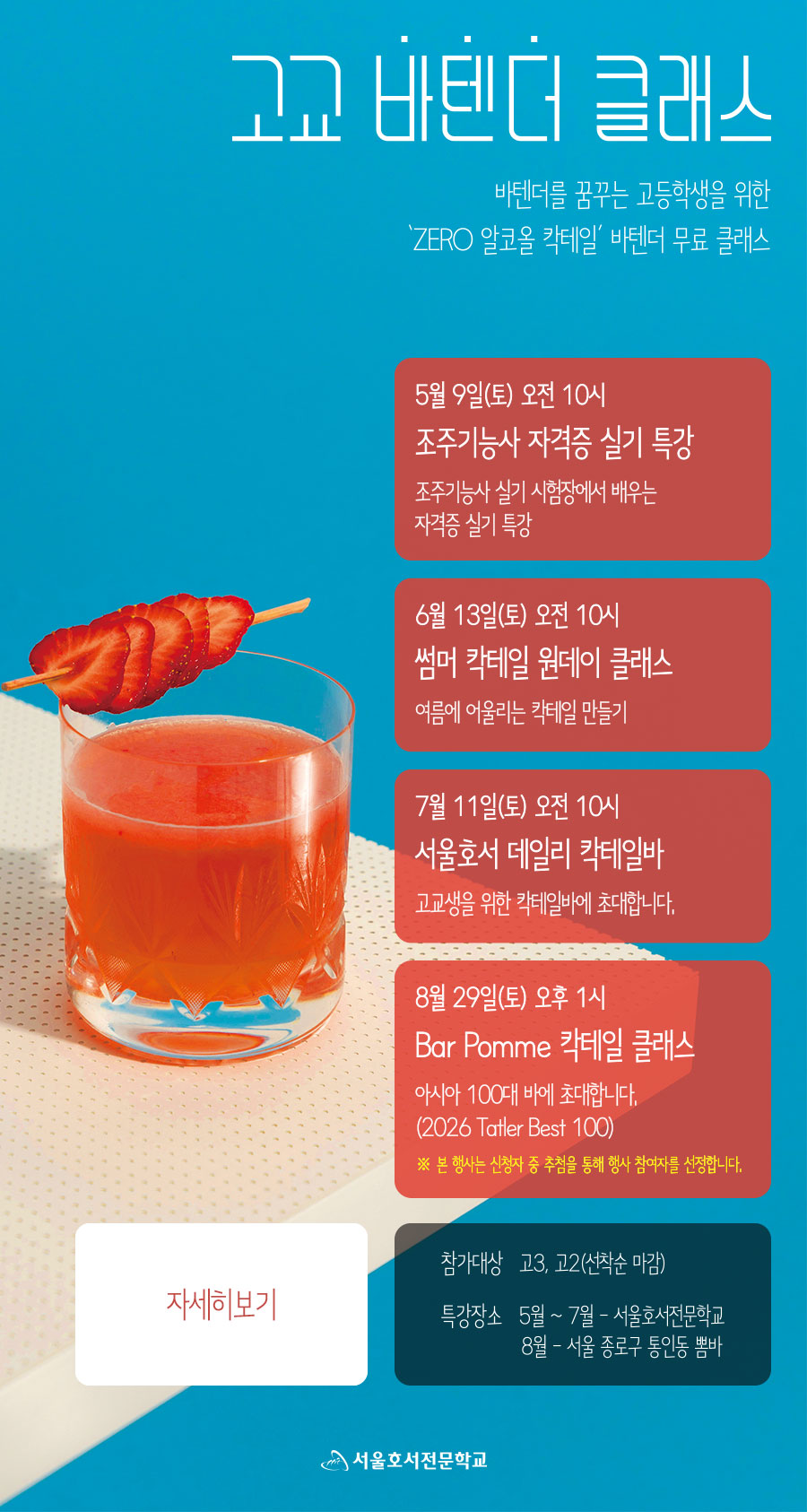 바텐더 진로 체험을 할 수 있는 원데이 클래스에 초대합니다.