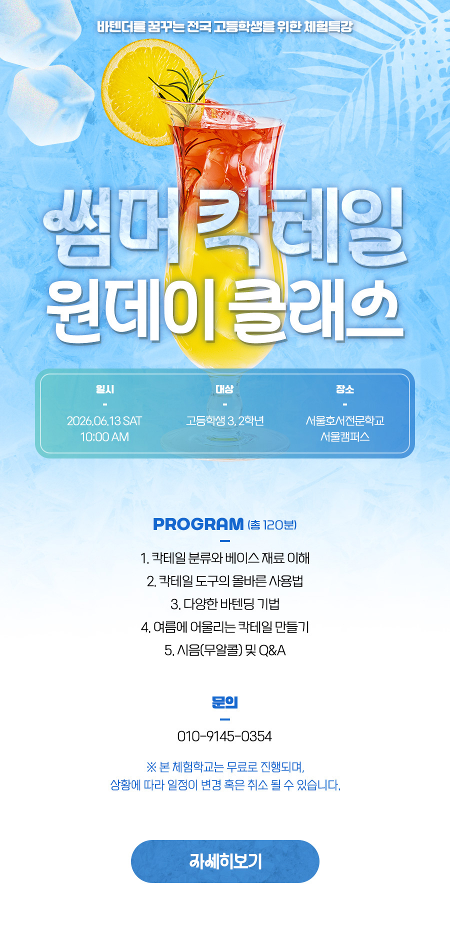 여름에 어울리는 논알콜 칵테일 만들고, 다양한 바텐딩 기법까지! 썸머칵테일 원데이 클래스에 초대합니다.