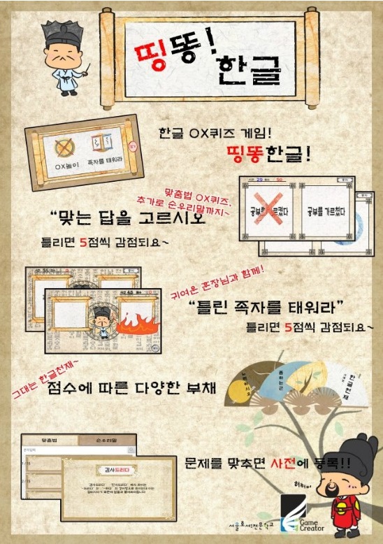 게임학과 세종문화회관 전시예정인 한글게임 어플 6 - 띵똥!한글 |