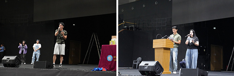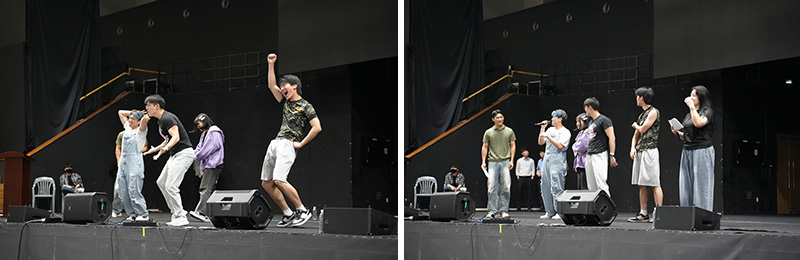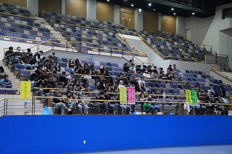 중간 휴식 시간에는 학생들의 개인기 타임이 이어졌는데요, 팀별로 자신 있는 학생들이 출전해 개인기를 펼쳤습니다. 발라드를 열창하거나 분위기를 제대로 띄우는 댄스타임까지 보이며 학생들의 응원의 열기가 더욱 뜨거워졌습니다.