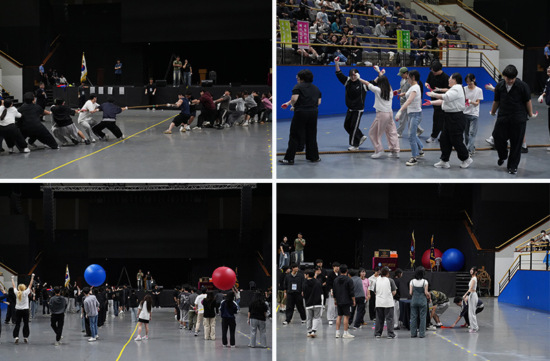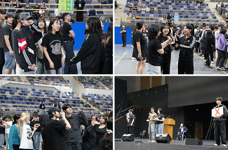 운동회는 오전 학교식당에서 식사 후 KBS 아레나로 이동하며 시작되었으며, 국민의례와 함께 이운희 이사장님의 축사, 남녀 선수 대표 선서, 개회 선언 순으로 진행되었습니다. 이후 총학생회 학생들이 사회를 맡아 본격적인 경기가 이어졌습니다.