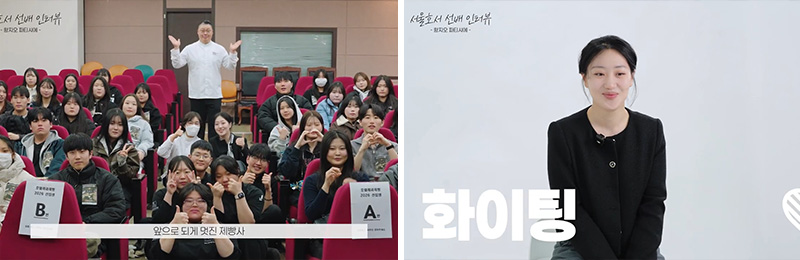 서울호서 호텔제과제빵계열을 졸업한 황지오 선배는 오랜만에 학교를 찾아, 인터뷰를 통해 후배들에게 따뜻한 응원의 메시지를 전했습니다.