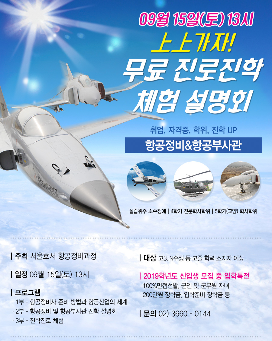 일시 : 2018년 09월 15일(토) 13시 / 대상 : 고3, N수생 등 고졸 학력 소지자 이상 / 장소 : 서울호서 서울캠