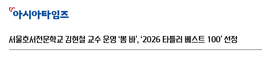 [아시아타임즈 = 신진열 기자] 서울호서전문학교는 김현철 호텔식음료서비스계열 교수가 운영하는 칵테일 바 '뽐 바'가 글로벌 라이프스타일 매거진 타틀러가 선정하는 ‘2026 타틀러 베스트 100’에 선정됐다고 밝혔다.