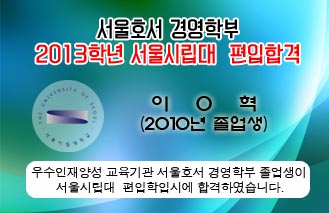 2013년 3월부터 저는 3학년으로 편입하여 서울시립대 국제관계학과에서 학업에 매진하며 교내 영자 신문사에서 활동하고 있습니다.